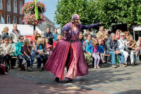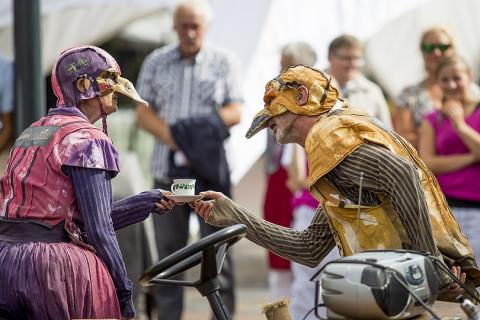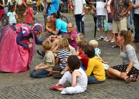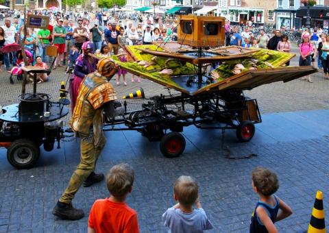 Een ontluikende straattheatervoorstelling als een bewegend stripverhaal.